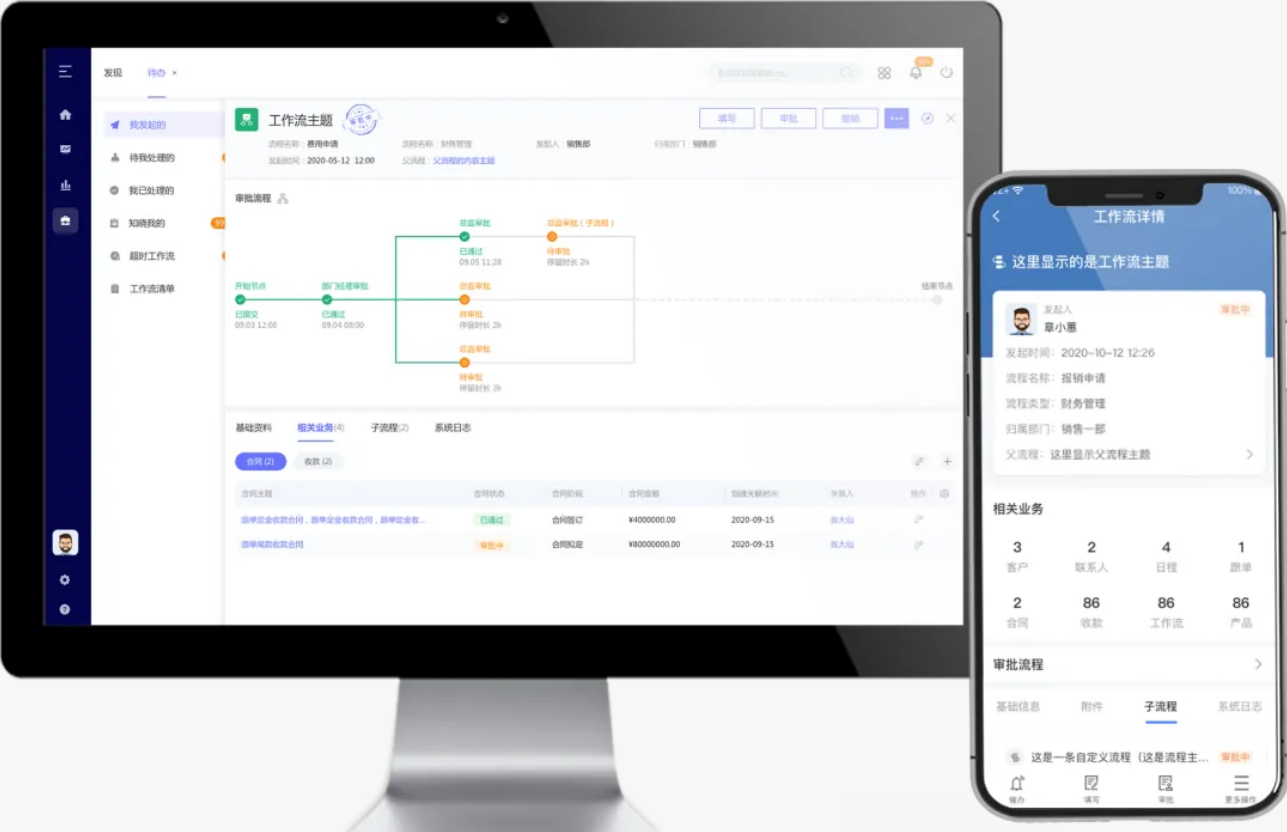 像管家婆CRM 里的审批,员工在线提交后,信息自动流转、自动提醒,不用纸质传递,不用反复催促,急事不卡壳。